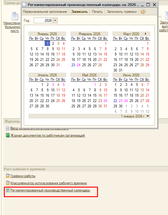 1.Заполнить Регламентированный календарь на 2026 год и обновить рабочие графики.