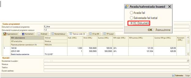 Dokumente on võimalik saata tarkvarasse „1C Raamatupidamine Eestis“ üksikult (näiteks arved).